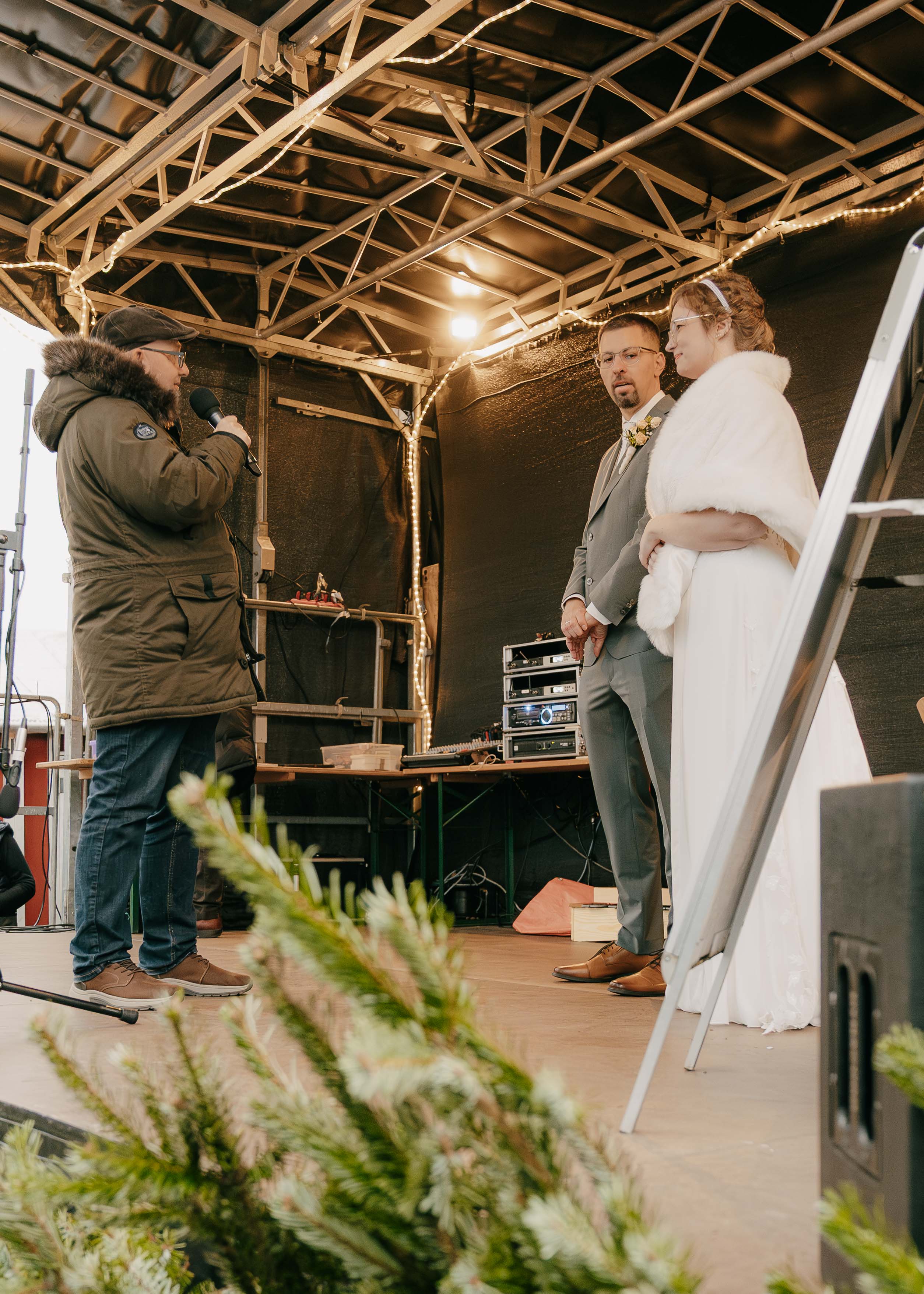 Während des Weihnachtsmarktes gab es noch für alle Beteiligten ein schönes Erlebnis. Ein Brautpaar gab sich in der Margaretenkirche das Ja-Wort. Ansschließend konnten wir ein paar Worte mit dem Paar auf unserer Bühne wechseln. Wir wünschen dem Paar alles Gute und möge die Liebe ewig währen.
